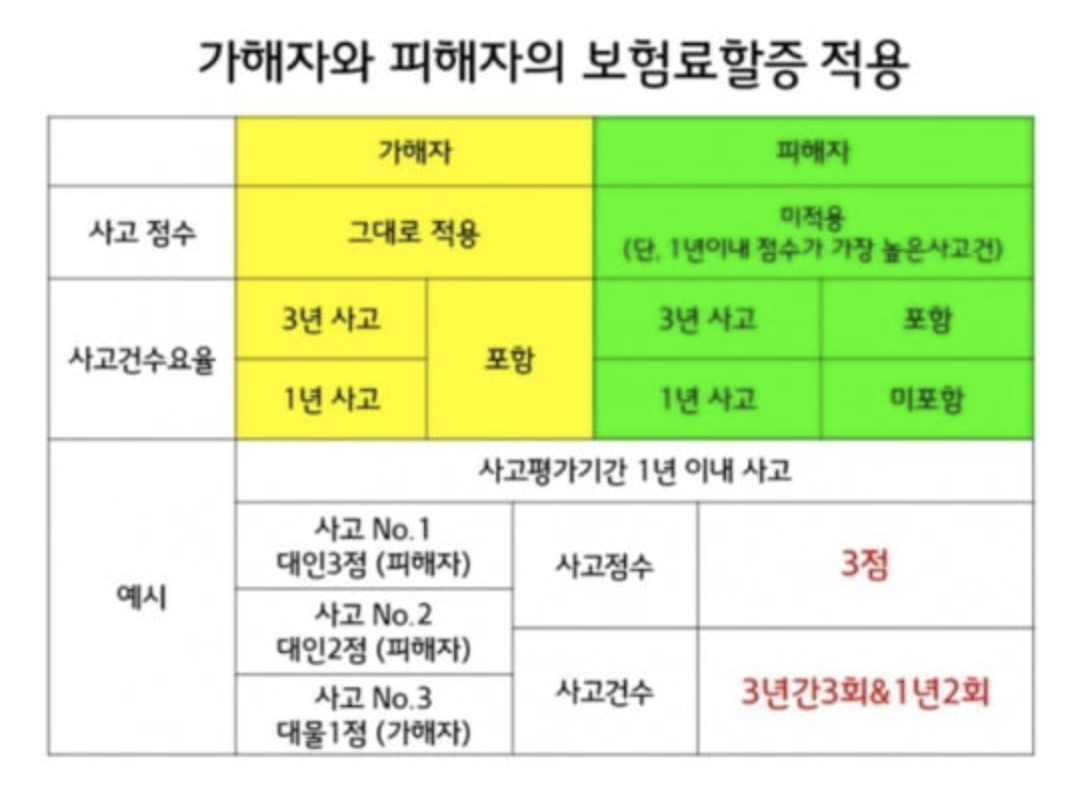 대신 "무사고 할인"이 없어지고, "사고건수 할증"의 단기간 할증이 생기므로 다음 해 할증은 된다. 이것도 또 설명하자니 복잡해서..