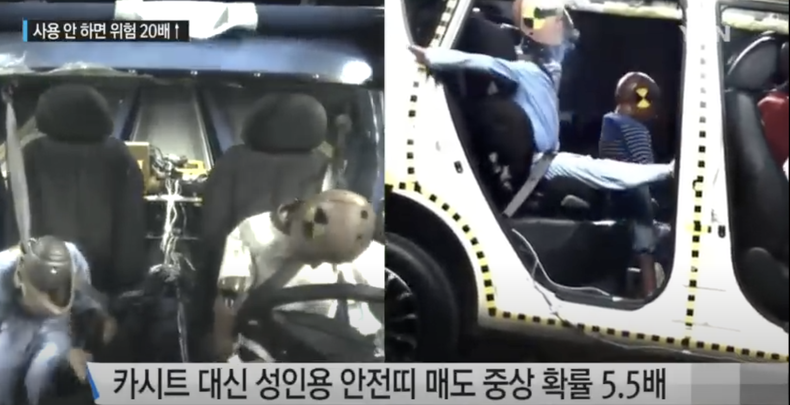 아이는 그대로 튕겨 나가거나, 더 최악의 경우 어른의 '에어백' 역할을 하게 되어 더 심각한 부상을 입는다.